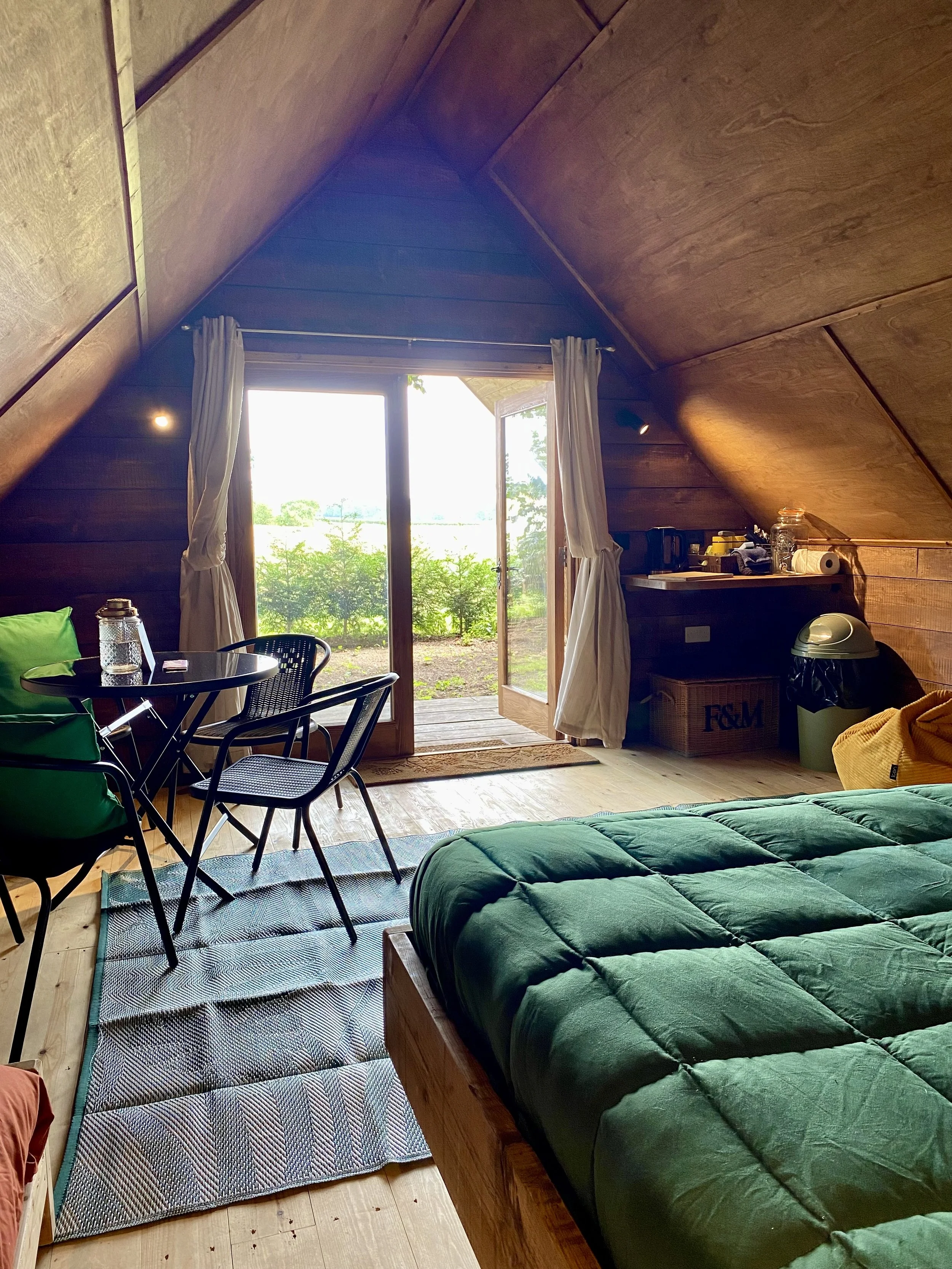 Tin tent with real double bed & 2 small children’s camping beds. Immersed in Nature on a Norfolk Wildlife Trust close to Sandringham and the North Norfolk Coast. The King Bell is positioned facing out to open countryside where you can detach from everyday life, watch wildlife and this tent captures sun down through the woods. The perfect retreat to disconnect and unwind. Toilet/showers a short walk away. BBQ/Fire pit. Comfortable Camping without the hassle of setting up. Bedding provided - bring towels